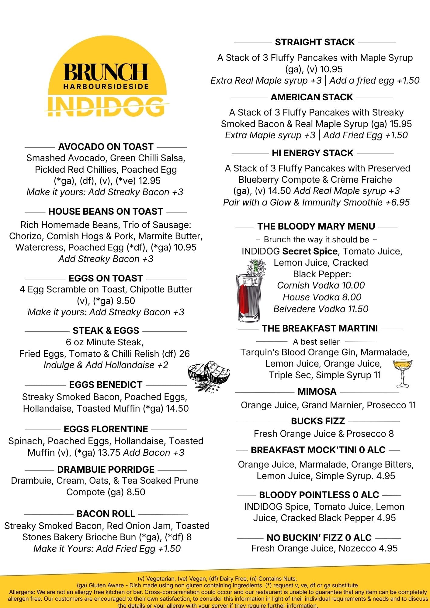 From avocado on toast and fluffy stacks with real maple syrup to lobster benedict and steak and eggs, Brunch at INDIDOG is made for slow mornings on the harbour in Falmouth.